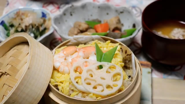 蒸篭で蒸し寿司