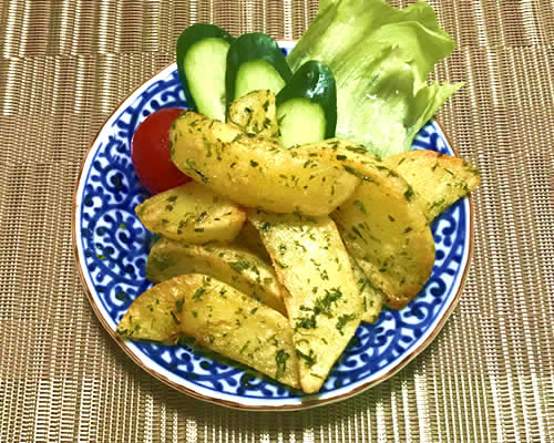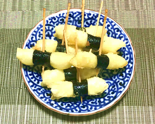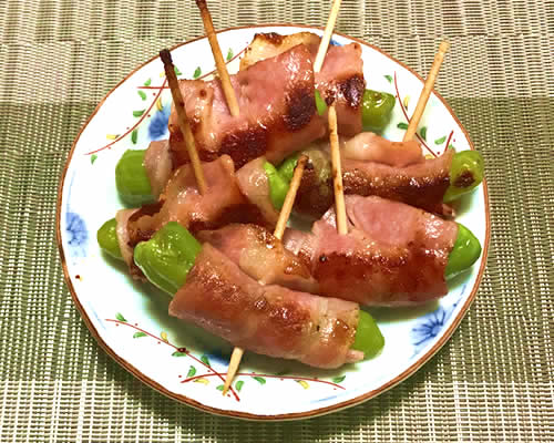 ししとうをイワシでくるんで、パン粉でフライにします。イワシは牛乳に浸けてから揚げるので、臭みもなく、さっぱり爽やかなフライです。