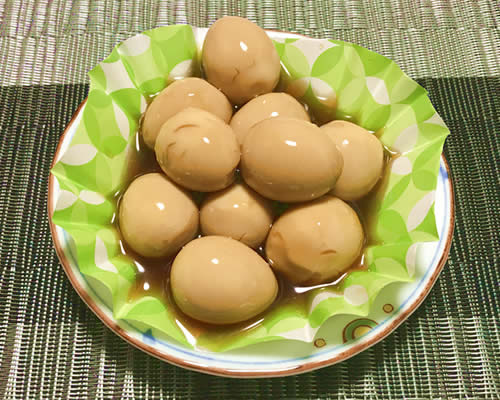 かれいの煮付けに、上からあんかけのタレをかけます。タレは煮汁をベースにして、中身はグリーンピース・人参・椎茸・カニかま・ほうれん草と種類も豊富で、地味なかれいの煮付けを華やかに変身させます。