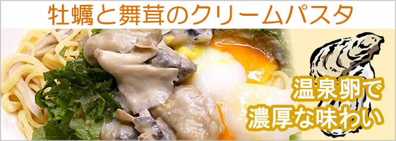 牡蠣と舞茸の牡蠣と舞茸は季節もピッタリ。クリームソースにからめて、パスタ料理として濃厚な味を楽しめます。