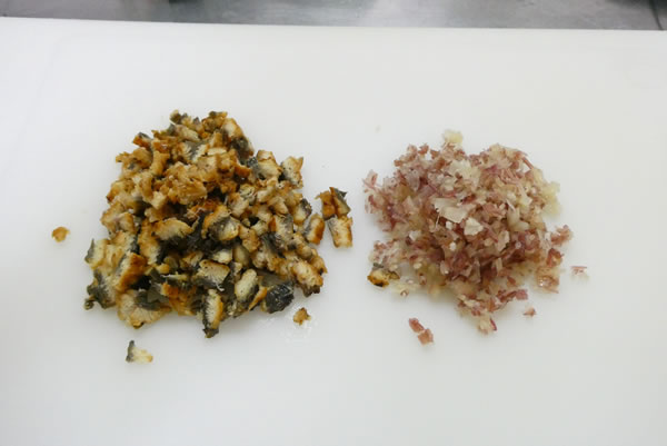 | 1. | 鰻とみょうがをみじん切りにしてボウルに入れ、手で捏ね合わせ、鰻のタレと山椒で味を調整する。 |