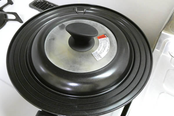 そして蓋をして強火で蒸し焼きに。ここらは定番の作業です。