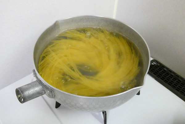 スパゲティを茹で始めます。