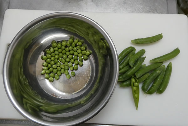 その間にグリーンピースをさやから取り出して茹でる準備をします。ちょっと量が多いので、余ったらグリーンピースご飯でもしようかなと考えながら、プチプチ。