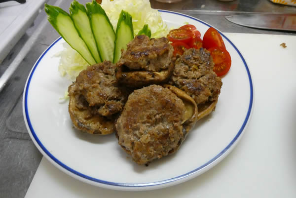 準備してあったお皿の上に、焼きあがったしいたけを乗せ、その上に別焼きのハンバーグを乗せて、肉詰めしいたけならぬ、肉乗せしいたけです。ちょっと不本意。