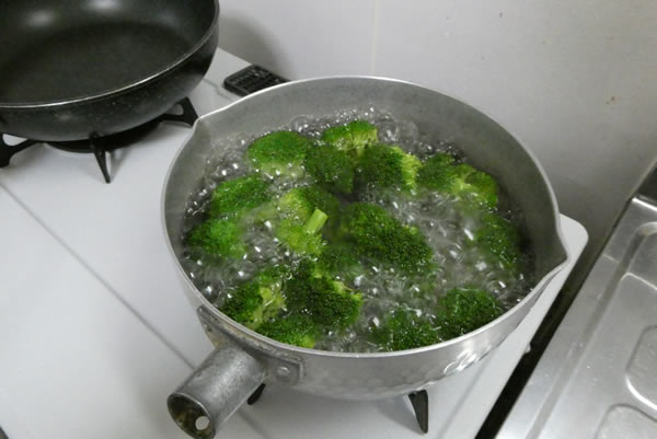 | 1. | ブロッコリーを切り分け、少し硬めに塩茹でにする。 |