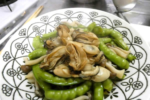 牡蠣と砂糖ざやの煮物