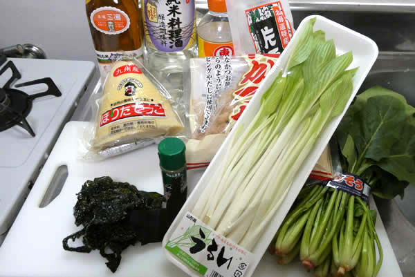 材料はこんな感じ。竹の子は、まだ季節には早いので、九州産の「ほりたてっこ」という水煮。便利な世の中を満喫。青みが欲しいので、ほうれん草にしようかと思いましたが、山形の「うるい」という山菜が売っていたので、そちらにしようかと迷っています。