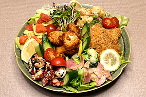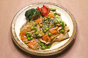 | 9. | 器に盛りつけ、彩りとしてミニトマトを適当にのせる。 |