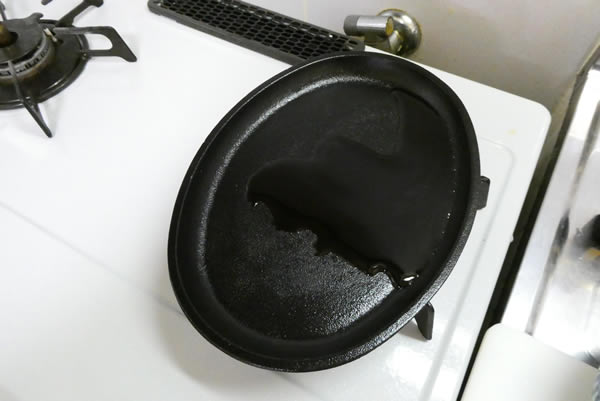 | 3. | 鉄板を熱して、蒲焼きのタレをたらし、水を足して薄める。 |