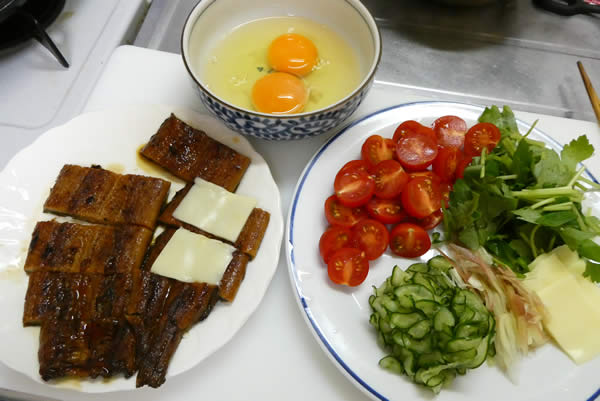 うなぎは蒲焼きだけで飽きたら、どのような食材と合わせればいいのだろうと考えてみました。卵ときうりは相性がいいのはわかっていましたが、みょうがとチーズはちょっと冒険。でも問題なく美味しいです。きっと何でも合うんじゃないのかな。うなぎは鰻ですから。