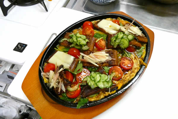| 5. | いったんうなぎを取り出して、タレが残った鉄板に溶き卵を回し入れる。 |