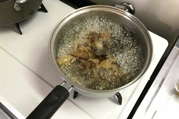あとは鍋蓋をして、コンロの火を止めます。