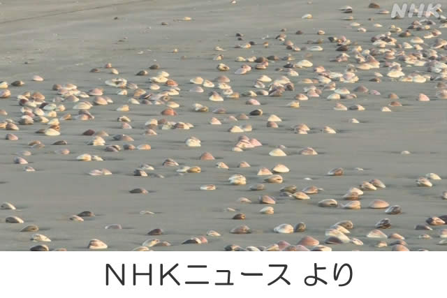 千葉県の九十九里浜で、四十数キロにわたって特産のハマグリが大量に打ち上げられている、というニュース。四十数キロといえばマラソンの距離で、これは大変な量のハマグリが打ち上げられ、行き場もなく砂...