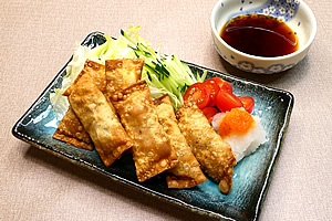 鯖の水煮缶と玉ねぎを餃子のあんのように捏ねて、ワンタンの皮に包んで油で揚げてみました。ポン酢しょう油につけて食べるもよし、そのままでも、もちろんOK! ビールのおつまみにも最高です。