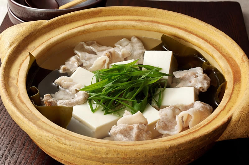 | 3. | 土鍋に 1.を入れて煮立てたら、酒・塩を入れ豚しゃぶロース肉を入れて加熱し、アクをすくう。 |