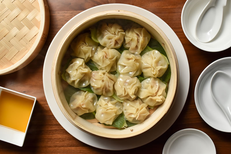 | 4. | 蒸篭にチンゲンサイを敷き3を並べて8沸騰した鍋に乗せ8分蒸して出来上がり。 |