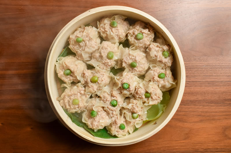 | 5. | 鍋に水を入れ沸騰したら蒸篭を置いて12分蒸して出来上がり。 |