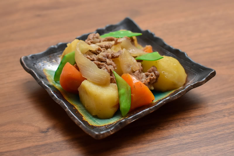 | 2. | 新玉ねぎはくし切り、牛肉は一口大に切る。 |