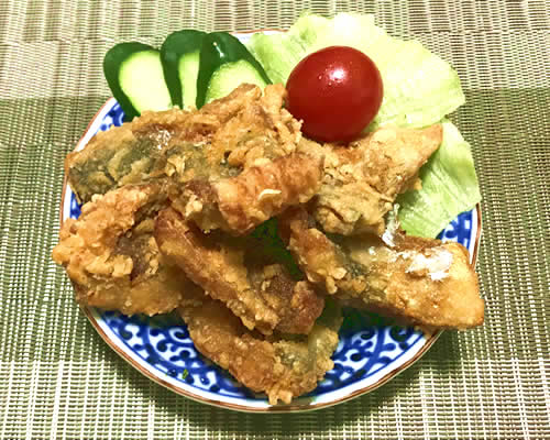 鯖缶の中身をほぐして、玉ねぎのスライスを加え、ギョーザの皮で包みます。そして鯖の味噌煮と同じように、鯖缶ギョーザの味噌煮として調理します。鯖には味噌がピッタリを確認できる一品です。