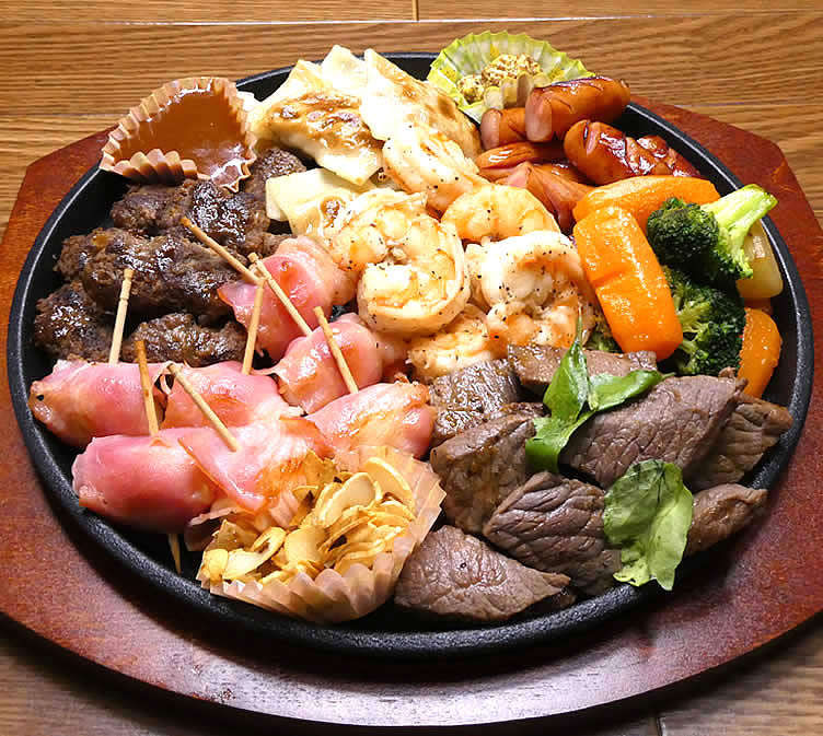 焼きうどんを鉄板皿でいただきます。鶏ガラスープと醤油ベースの味付けで、卵を鉄板横に焼きつけて、かつお節と紅生姜を上にかけ熱々がたまりません。
