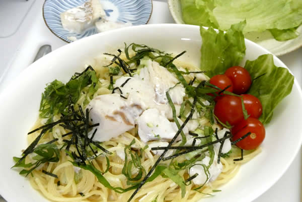 | 8. | 上から細切りの大葉ときざみ海苔をかけて出来上がり。 |