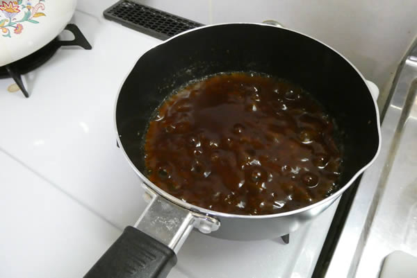 | 3. | さらに、お酒、みりん、濃口しょう油で味付けして、しばらくの間煮込む。 |