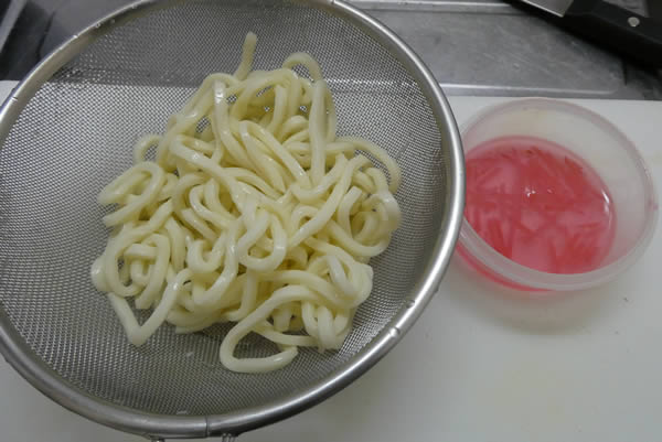 お湯でほぐしてあったうどんと、横に紅生姜。