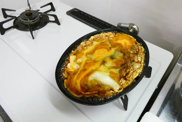| 5. | いったんうなぎを取り出して、タレが残った鉄板に溶き卵を回し入れる。 |