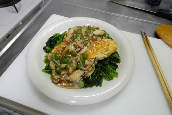 上から、準備してあったあんをかけて出来上がりです。概ね成功。
