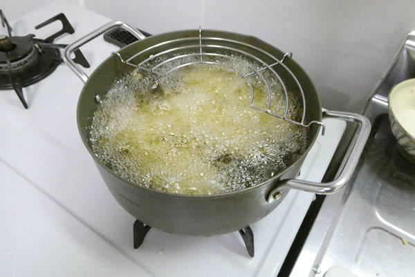 揚げ油の準備。今回はまっさらの油で、気持ちが新鮮です。