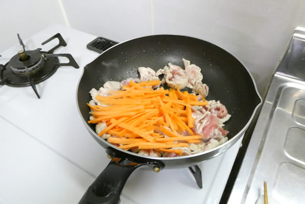 そして人参を加えます。硬い順から入れるクセがついているので、最初に人参ということで。