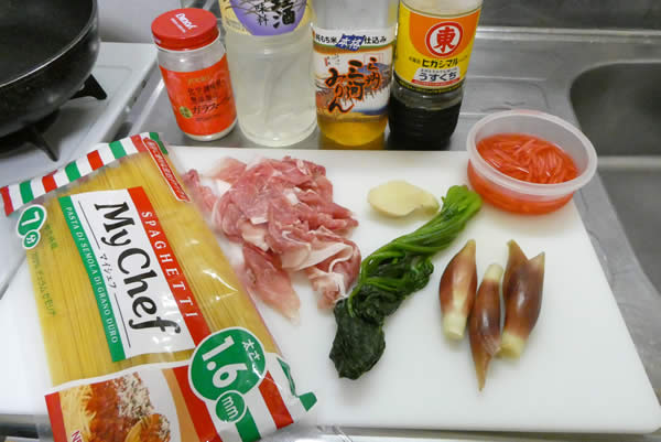 豚肉とみょうがのパスタ